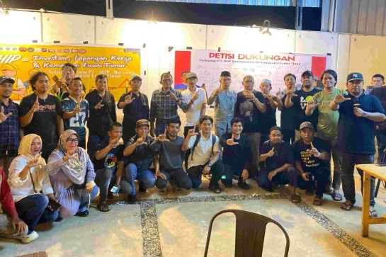 Deklarasi dukungan tersebut digelar pada Minggu malam (19/10/2025) di Warkop Andara, Desa Puncak Indah, Kecamatan Malili, dan dihadiri oleh perwakilan dari desa-desa sekitar tambang, organisasi masyarakat, serta unsur pemuda.