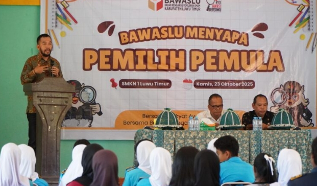 Kalimat itu menjadi penegas semangat Bawaslu dalam menanamkan nilai-nilai pengawasan partisipatif kepada para pelajar melalui kegiatan Bawaslu Menyapa Pemilih Pemula di SMKN 1 Luwu Timur, Kamis (23/10/2025).
